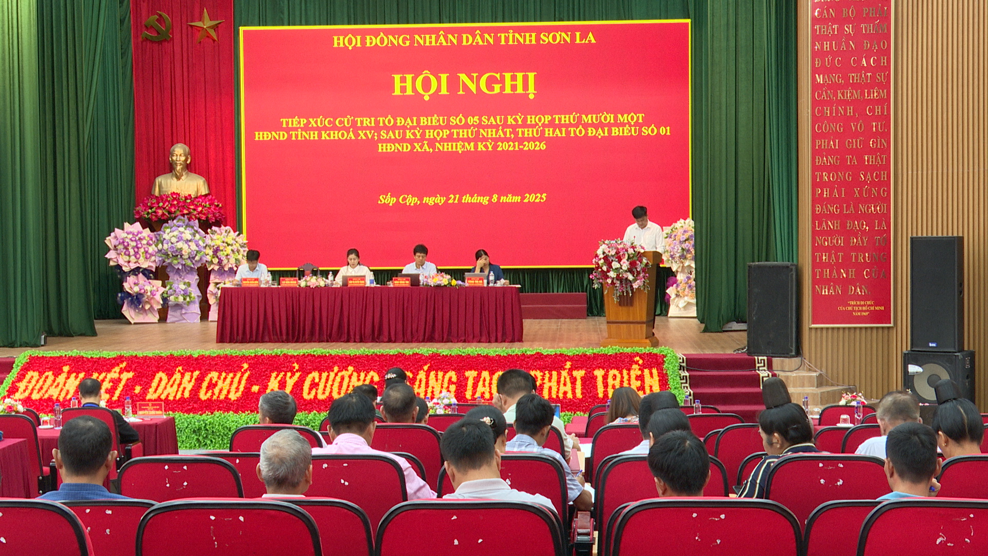 Sáng ngày 21/8, Tổ đại biểu số 05 HĐND tỉnh và tổ số 1 HĐND xã Sốp Cộp do đồng chí Đào Đình Thi, Bí thư Đảng ủy, Chủ tịch HĐND xã làm Tổ trưởng đã tiếp xúc cử tri xã Sốp Cộp sau Kỳ họp thứ 11 HĐND tỉnh khóa XV và Kỳ họp họp thứ Nhất, thứ 2 HĐND xã, nhiệm kỳ 2021 2026. Dự buổi tiếp xúc có các đồng chí trong Tổ đại biểu Số 05 HĐND tỉnh và Tổ số 01 HĐND xã, cùng các đồng chí, Tòng Thị Kiên, Phó Bí thư Thường trực Đảng ủy xã; đồng chí Nguyễn Quốc Tuấn, Phó Bí thư Đảng ủy, Chủ tịch UBND xã; các đồng chí trong HĐND, UBND, UBMTTQVN xã, lãnh đạo phòng chuyên môn, các ban ngành, đoàn thể xã, đại diện cử tri các bả